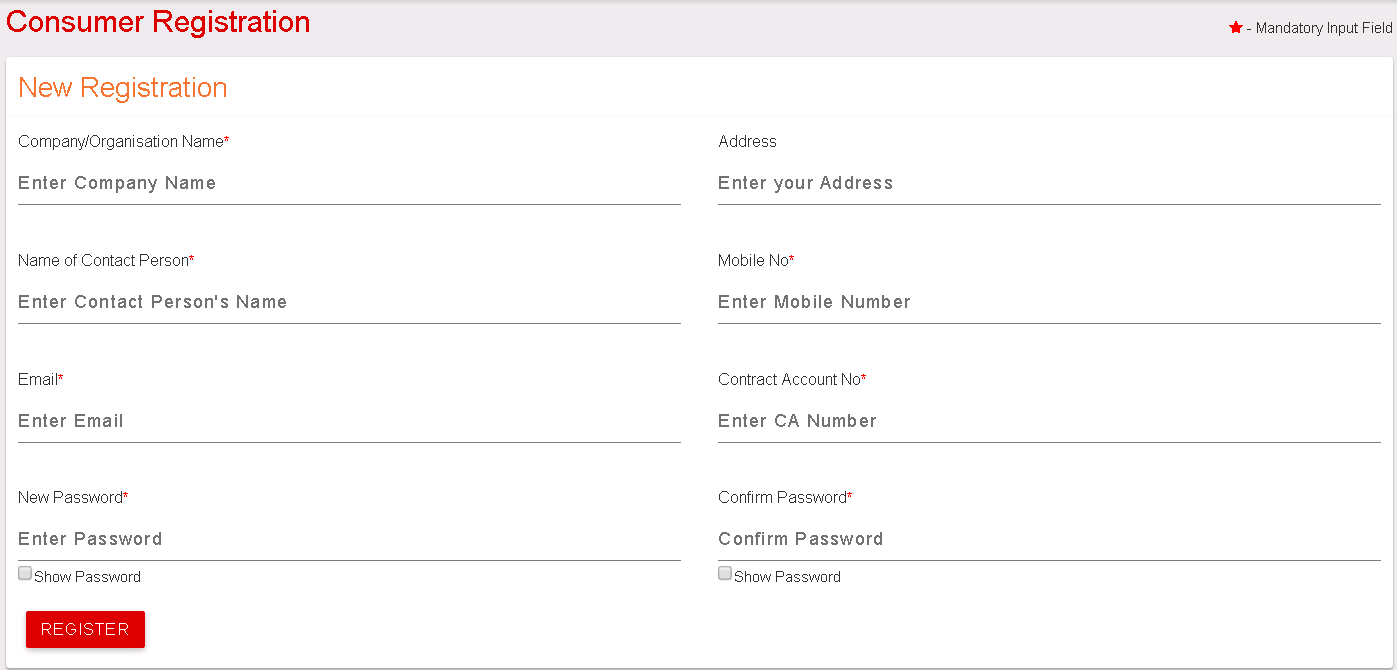 In Registration process, customer/user can enter their consumer number (if there are more than one consumers then user has to enter any one of the consumer number). After entering the entire mandatory details user will get the OTP to complete the registration process on the registered mobile number.